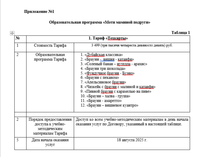 2.1. Оферта - предложение Исполнителя, адресованное дееспособному физическому лицу, индивидуальному предпринимателю или юридическому лицу, заключить с Исполнителем Договор на оказание платных образовательных услуг Исполнителя по программе «Моти маминой подруги» на условиях, содержащихся в Оферте, включая Приложение №1.